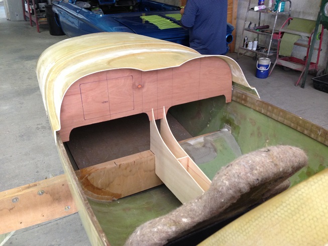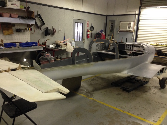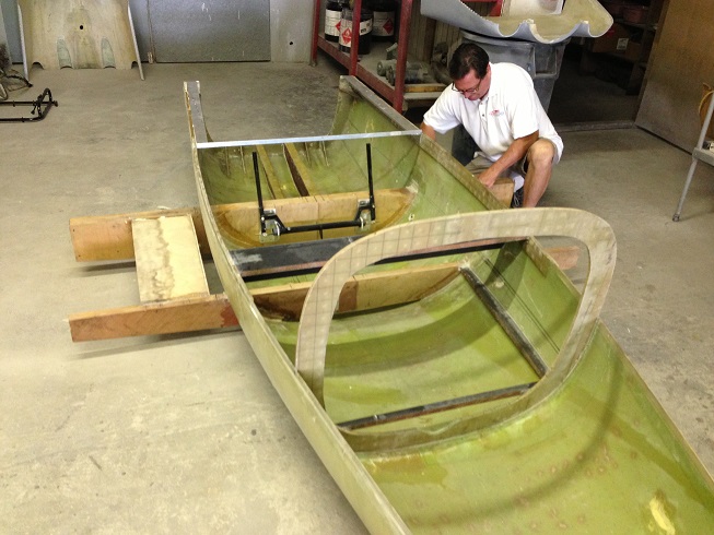 The fuselage kit comes as a "boat" that you build into. The first order of business once you receive the kit is to install the main spar (7 feet long) and bolt on the landing gear. or set up on blocks. The seats can then be installed and the major bulkheads cut and put into place. It is all done with very simple mixing of basic epoxy and flox, and very simple reinforcements. The progress will be quick and the visual results encouraging. Below are some pictures of the building of the prototype. Kit components are becoming available this year.